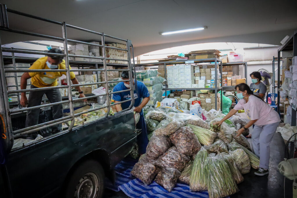 สะพานบุญนำส่งสิ่งของสมทบจากผู้มีอันจะกินจากฐาน 4 พอ ส่งตรงสู่โรงครัวเพื่อแบ่งปันสู่ผู้ขาดแคลนผ่านเครือข่ายพุทธิกา อรุณอัมรินทร์ กรุงเทพฯ