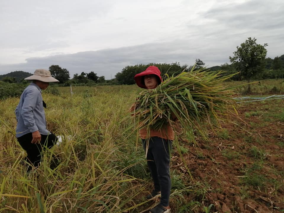 20 ตุลาคม 2563 ผู้ใหญ่อ้อย ผอ.ศูนย์ ทีมครูจากศูนย์เรียนรู้ศาสตร์พระราชาคืนป่าสัก จ.ลพบุรี มาร่วมให้กำลังใจและลงแรงเกี่ยวข้าวที่สวนการจารี ของ ครูนัส